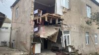Binəqədidə kanalizasiya kollektoru üstündə tikilən ev çökdü –FOTO